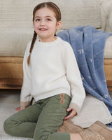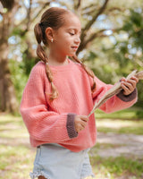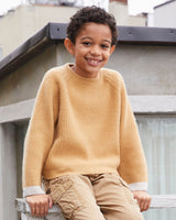 This 100% cashmere sweater is not your basic pullover. Your kids are going to look impossibly cool, and you're going to wish we made your size to match. The colorblock cuff coordinates with our joggers.