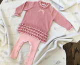 Your little girl will look adorable in this ruffled dress complete leggings attached.
